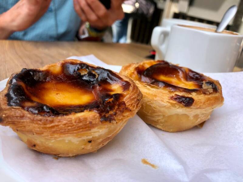 Na een koffietje trekken we de stad in. Het eerste uitstalraampje met lekker gebak en we hangen🙈. We smullen een heerlijke pasteis de nata. Dan realiseren we ons dat we vergeten zijn een foto te nemen van dit portugese moment bij uitstek. En... we kunnen er best nog eentje op. Heerlijk!